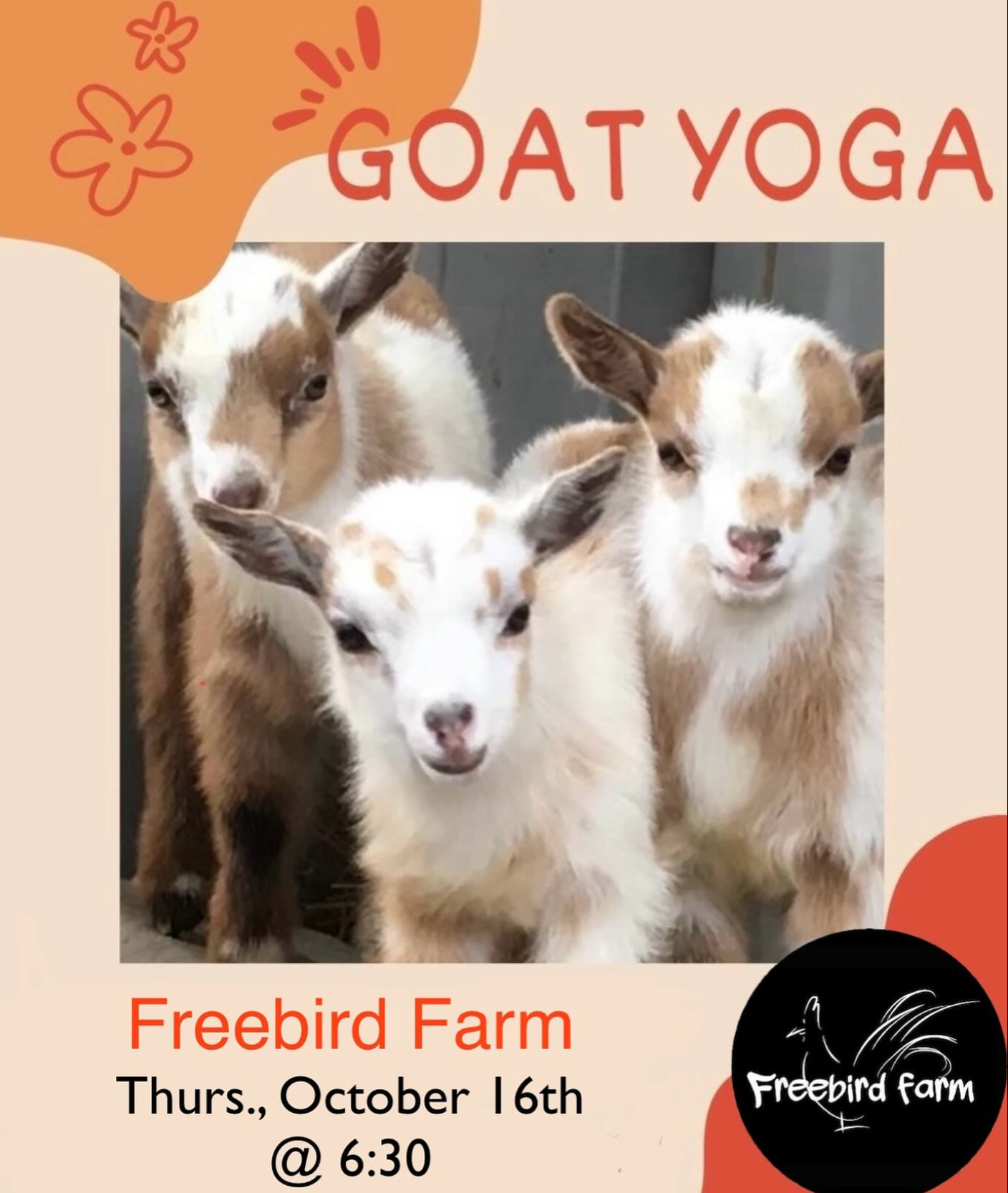 - This event is geared toward adults. If you plan to bring your (participating) child, please be sure they participate and are supervised at all times. (Children may not run around the farm during Goat Yoga.)